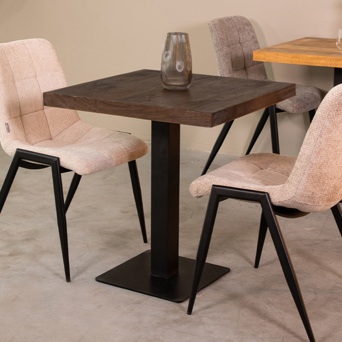 Restauranttafelblad 70×70 cm van LABEL51, uitgevoerd in Espresso is met zijn gezandstraalde mango houten oppervlaktes een sfeervolle verschijning. Het blad heeft warme toon, waardoor het een extra levendige uitstraling krijgt en zorgt voor lekker veel sfeer in horecagelegenheden! Combineer het blad met een ideale tafelpoot.